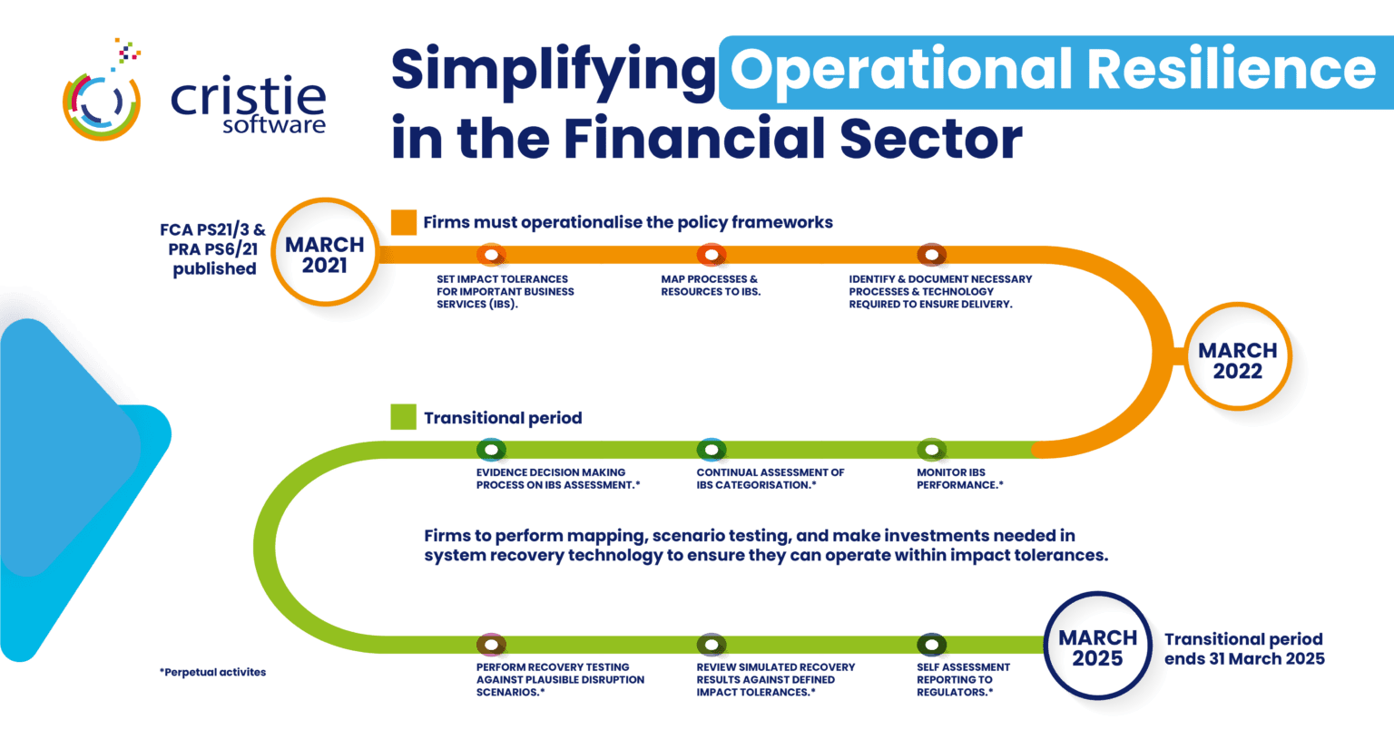 The Financial Conduct Authority (FCA) and Prudential Regulation Authority (PRA) respective policy statements PS21/3 & PS6/21 published in March 2021 established the frameworks for relevant firms within the financial sector to implement measures that would ensure Operational Resilience for important business services. The practical implications of achieving compliance with these directives present far-reaching obligations for applicable firms and prescribe a significant investment in planning, processes, and technologies. At the highest level the directives required firms to operationalize the following fundamental parameters during the period from March 2021 to March 2022.
